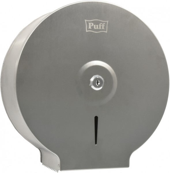 Диспенсер для туалетной бумаги Puff 7615 нержавеющая сталь — удобное, прочное и надежное устройство для общественных туалетов с большой проходимостью. Подходит для туалетной бумаги с диаметром рулона до 24 см. Зазубренный край упростит отрыв бумаги, а смотровое окошко поможет следить за расходом и своевременно заменить пустую втулку на новый рулон.