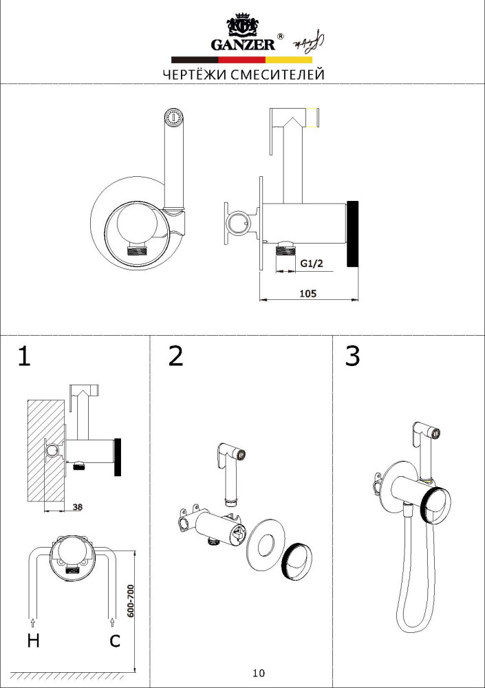 • Гигиенический душ Ganzer GZ19157-G сатин