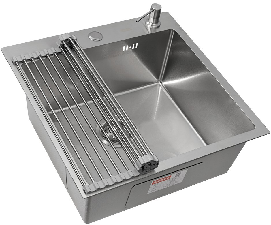 Быстрая покупка товара: Кухонная мойка Arfeka Eco AR 50x50 (комплект роллер-мат+дозатор) Satin Decor Volcanic Rock код: 148869