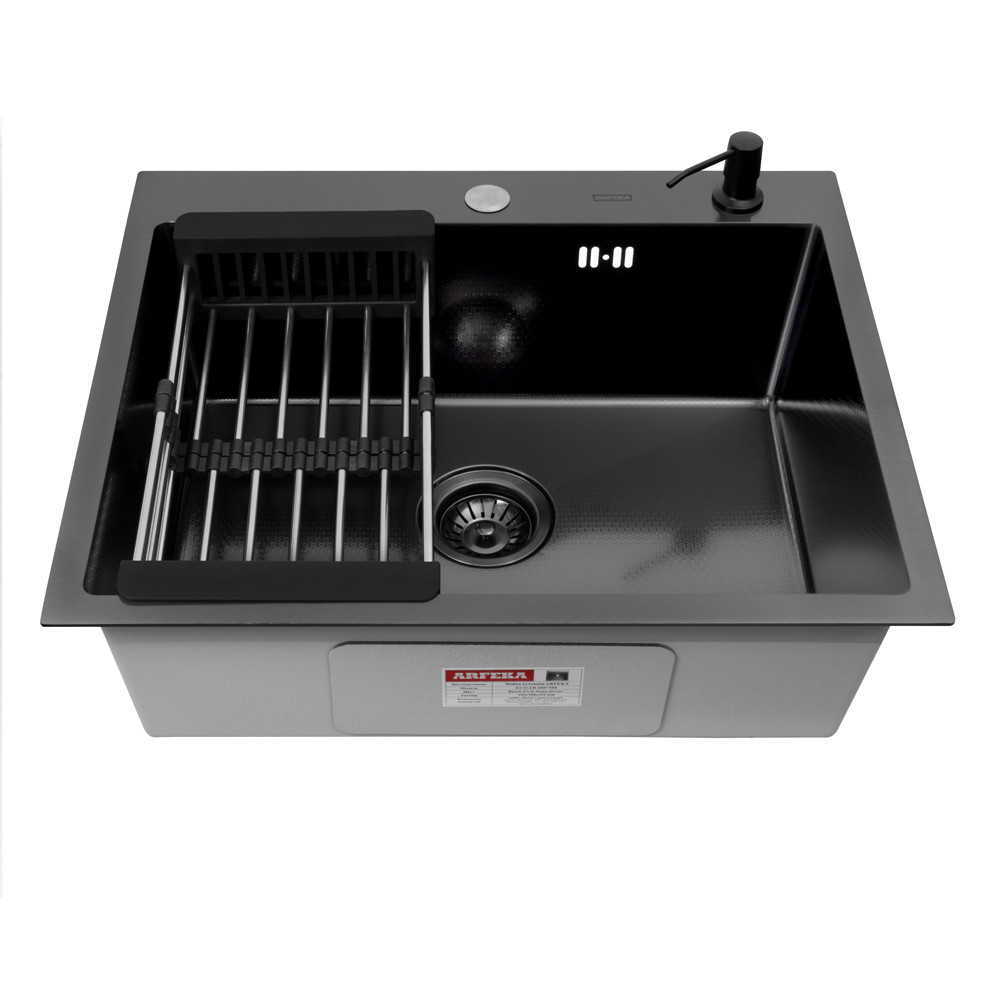 Кухонная мойка Arfeka Eco AR 60x50 (комплект коландер+дозатор) Black Decor