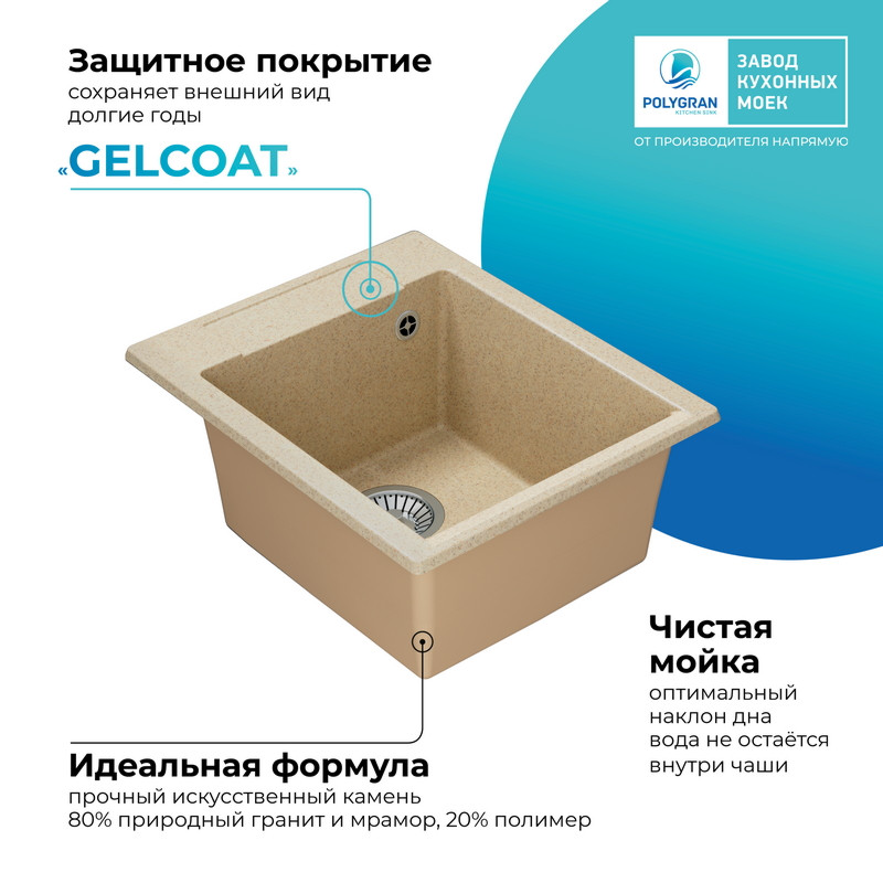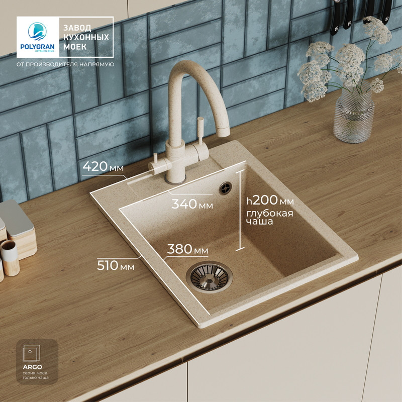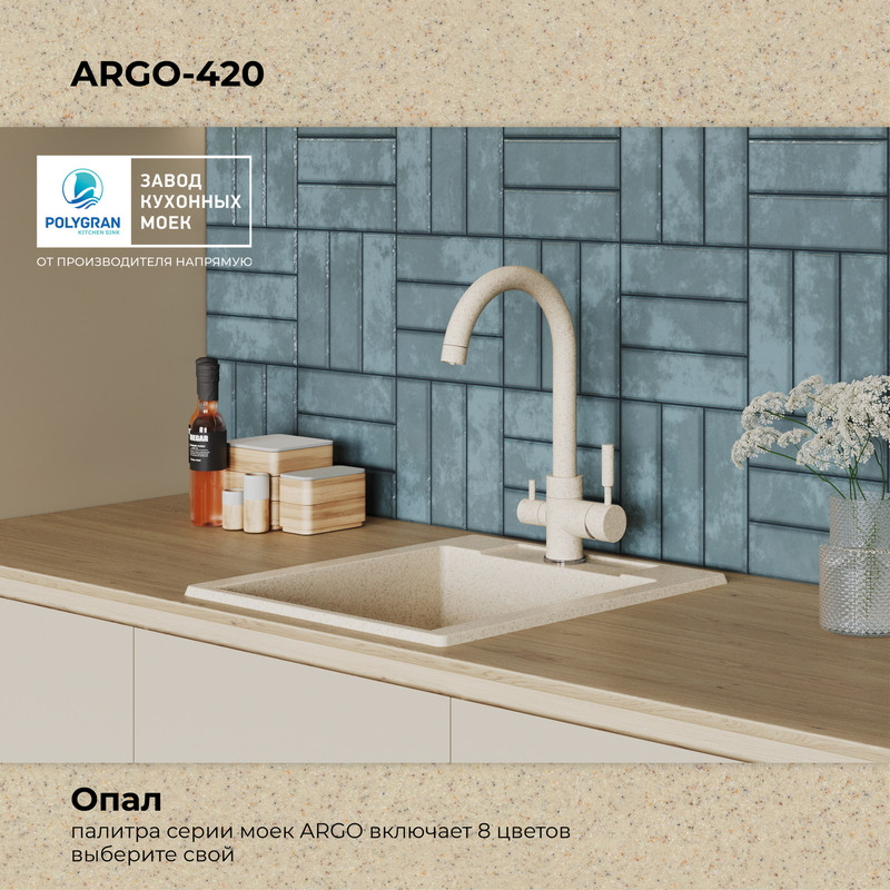 Быстрая покупка товара: Кухонная мойка Polygran ARGO 420 опал код: 150604