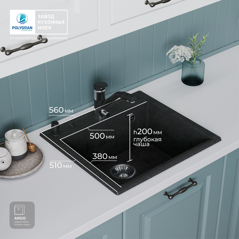 Быстрая покупка товара: Кухонная мойка Polygran ARGO 560 космос черный металлик код: 150618