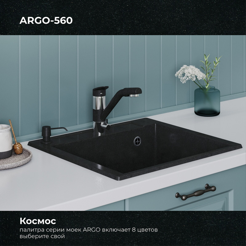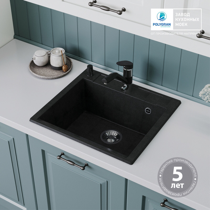 Кухонная мойка Polygran ARGO 560 космос черный металлик