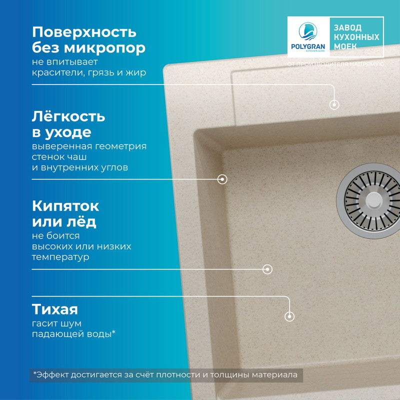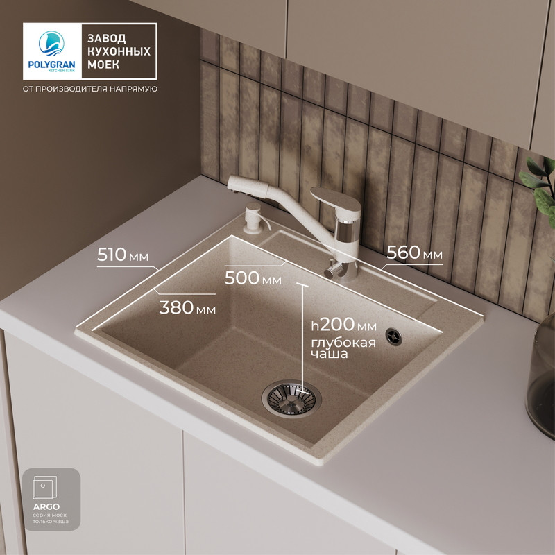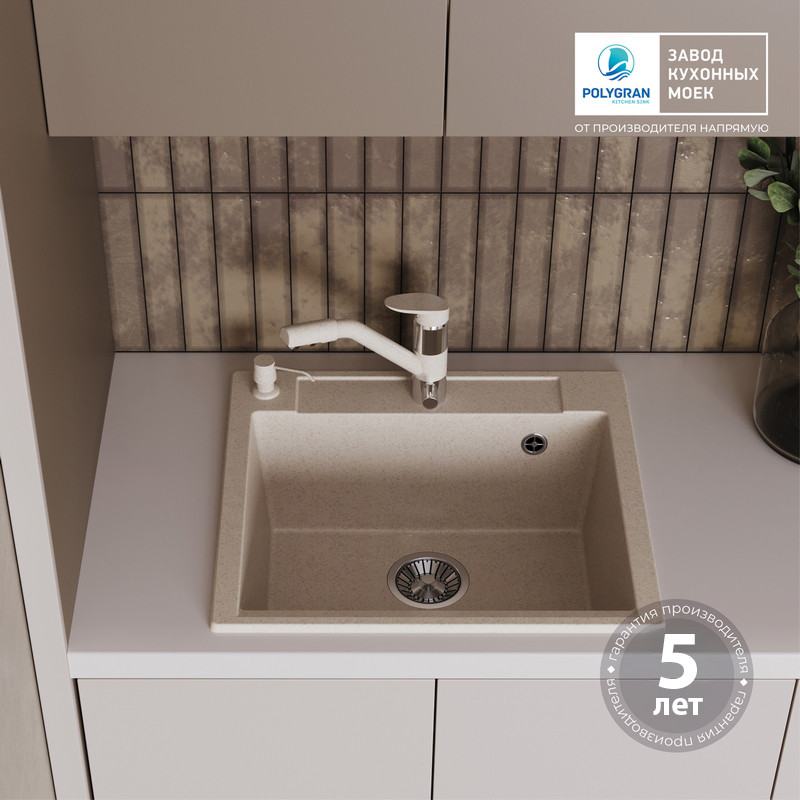 Быстрая покупка товара: Кухонная мойка Polygran ARGO 560 кремовый код: 150619