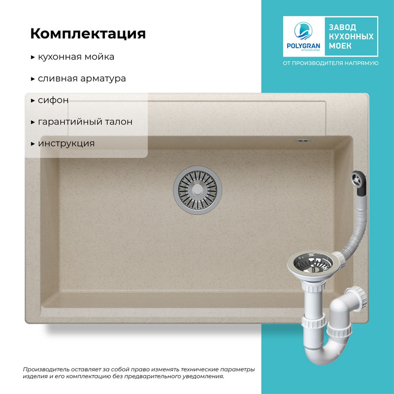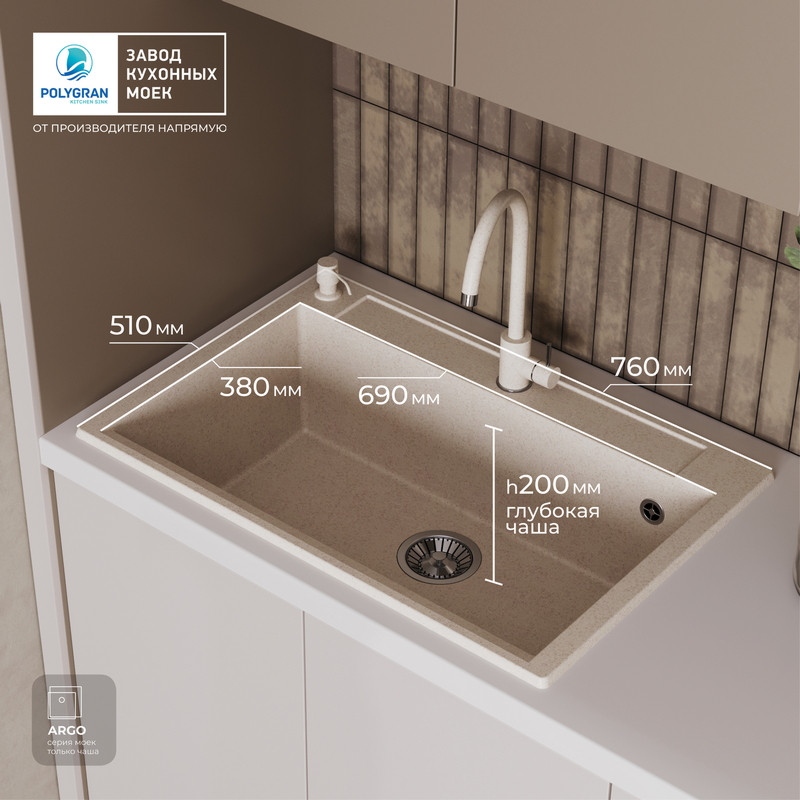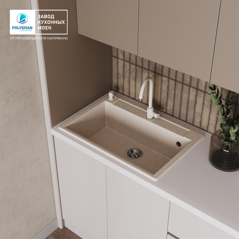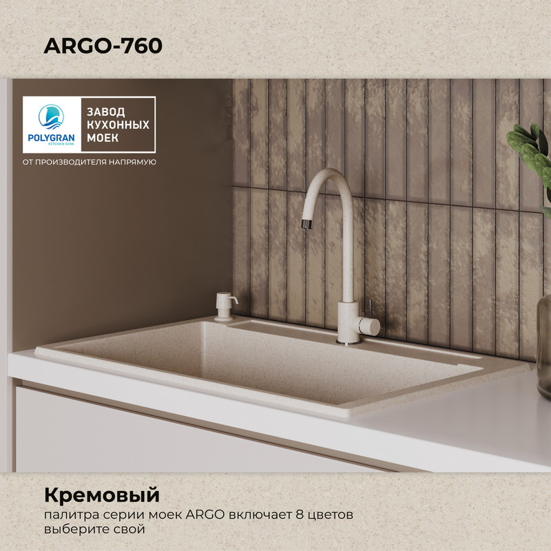 Быстрая покупка товара: Кухонная мойка Polygran ARGO 760 кремовый код: 150627