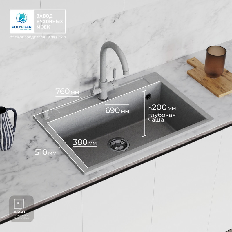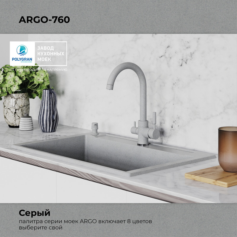 Быстрая покупка товара: Кухонная мойка Polygran ARGO 760 серый код: 150622