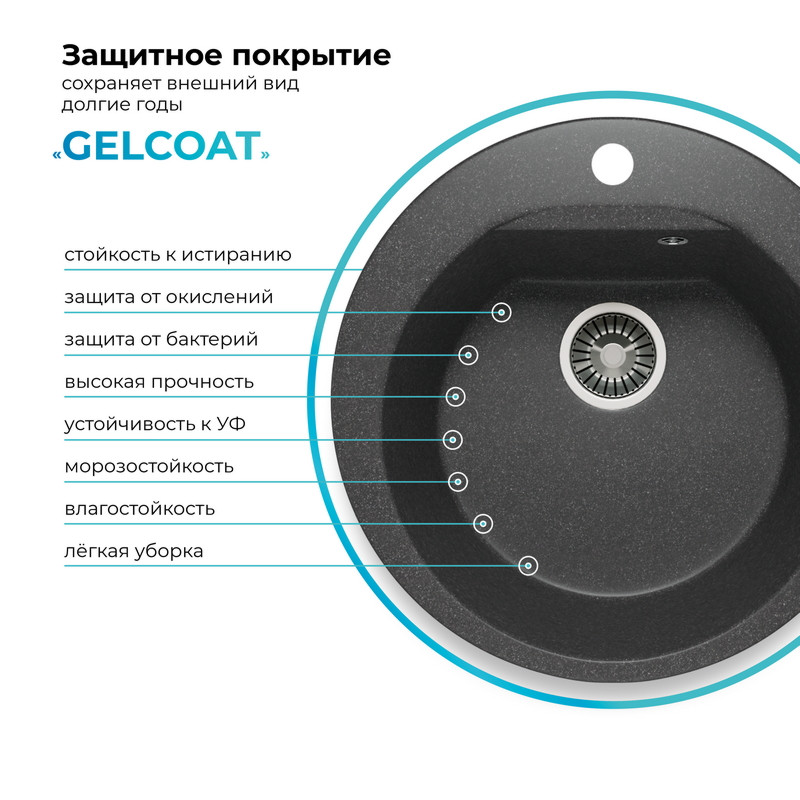 Быстрая покупка товара: Кухонная мойка Polygran ATOL 460 черный код: 150713