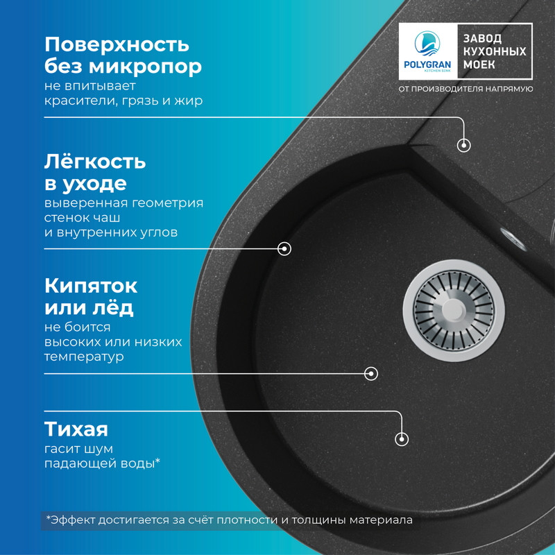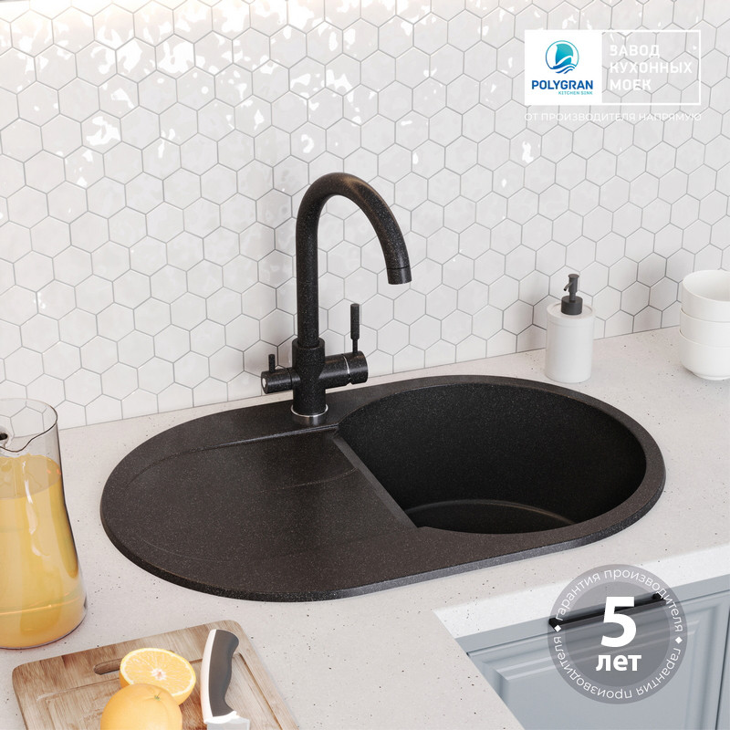 Быстрая покупка товара: Кухонная мойка Polygran ATOL 760 черный код: 150737