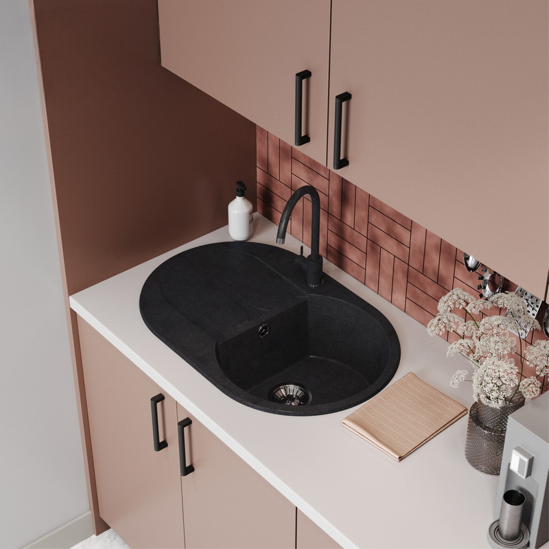 Кухонная мойка Polygran ATOL 760 космос черный металлик