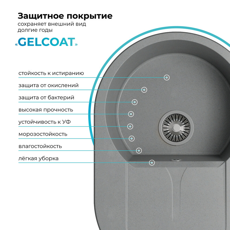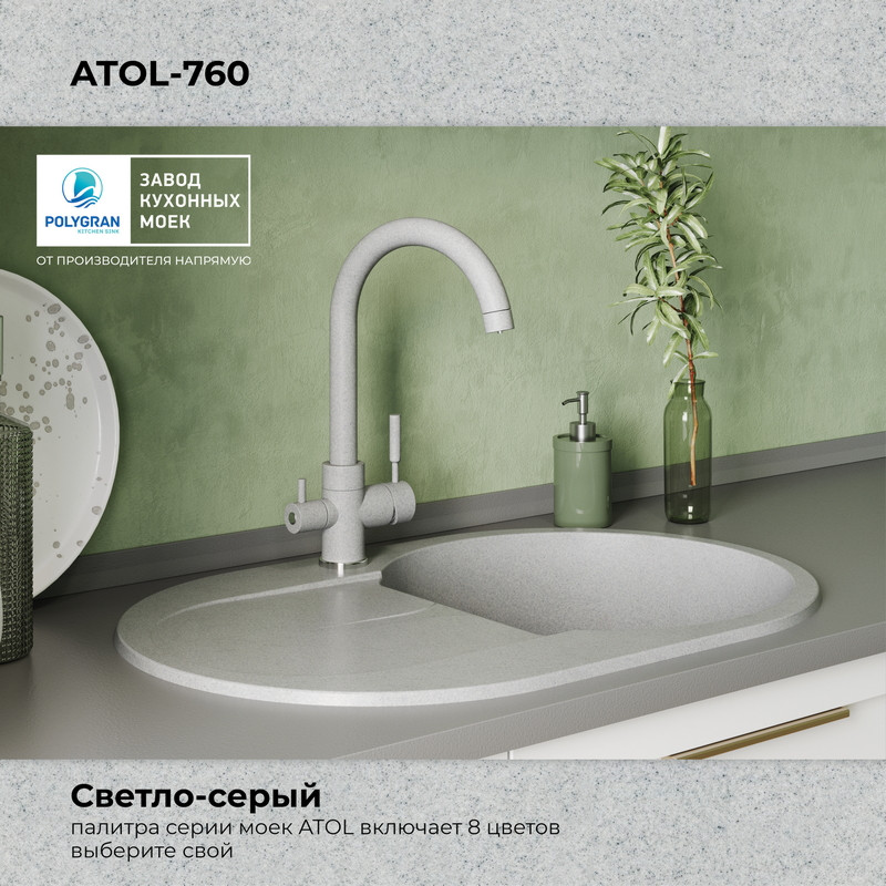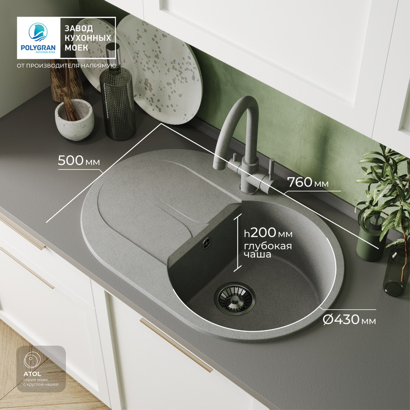 Быстрая покупка товара: Кухонная мойка Polygran ATOL 760 серый код: 150736