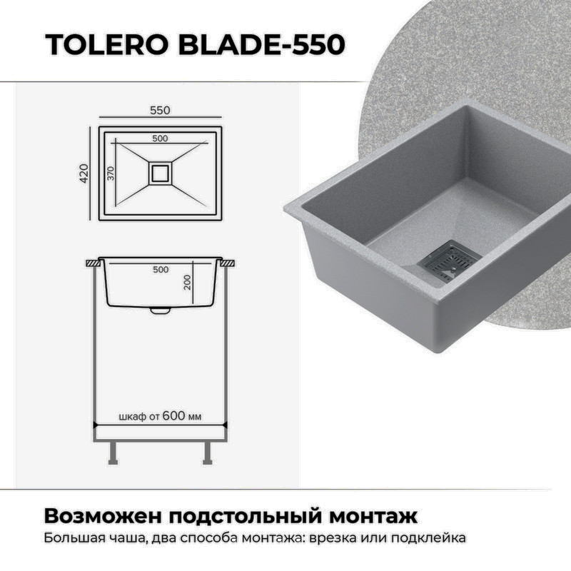 Быстрая покупка товара: Кухонная мойка Polygran Blade 550 серый код: 150644