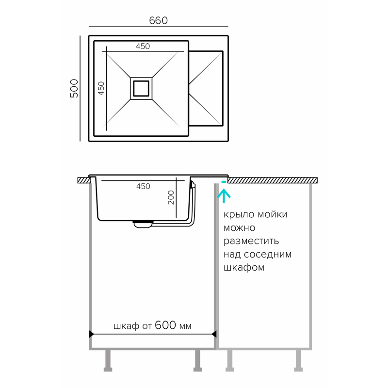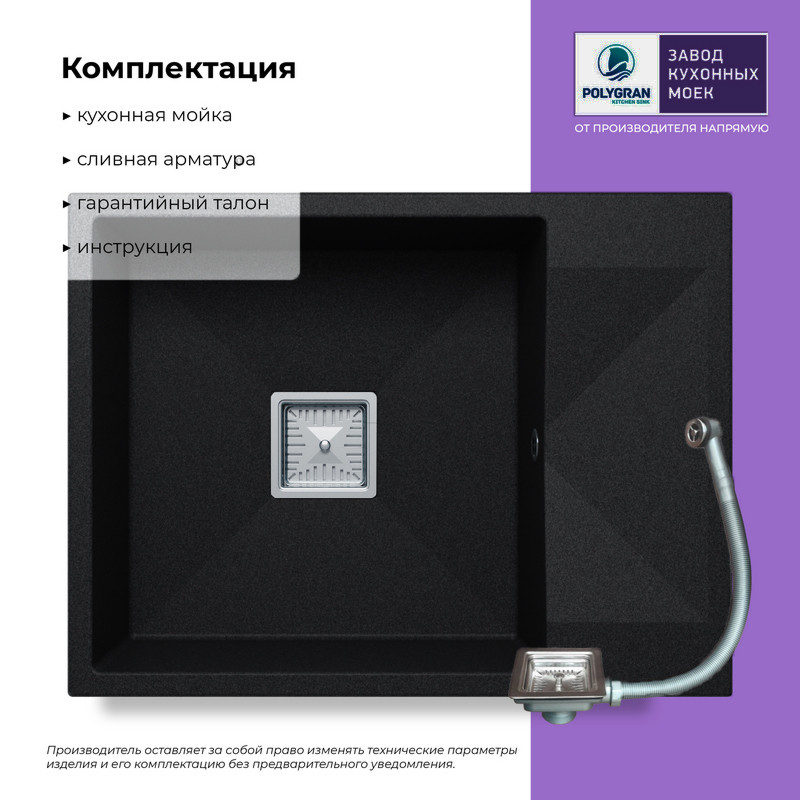 Быстрая покупка товара: Кухонная мойка Polygran Blade 660 черный код: 150651