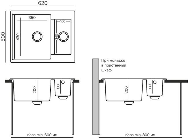 | Способ установки | врезная на столешницу |