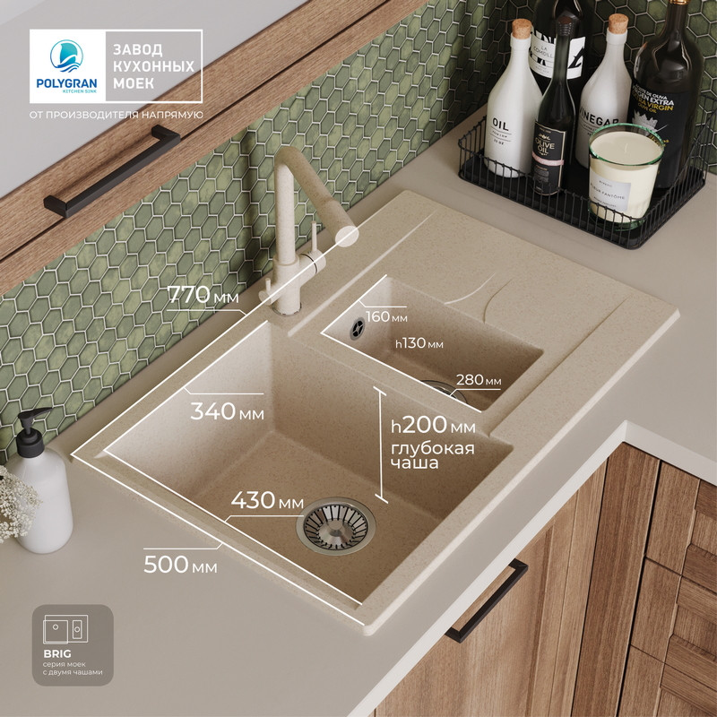 Быстрая покупка товара: Кухонная мойка Polygran BRIG 770 кремовый код: 150757