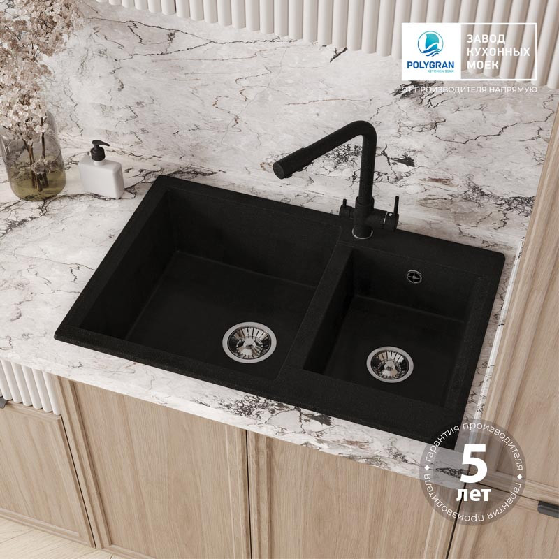 Кухонная мойка Polygran BRIG 772 космос черный металлик