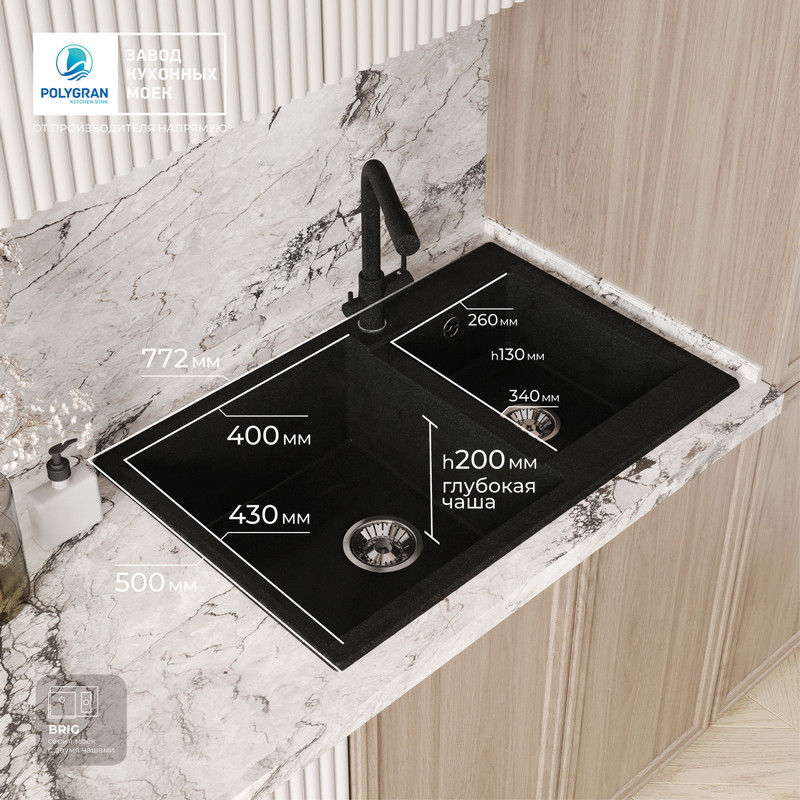 Быстрая покупка товара: Кухонная мойка Polygran BRIG 772 космос черный металлик код: 150764