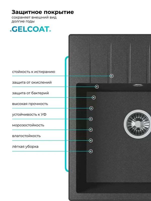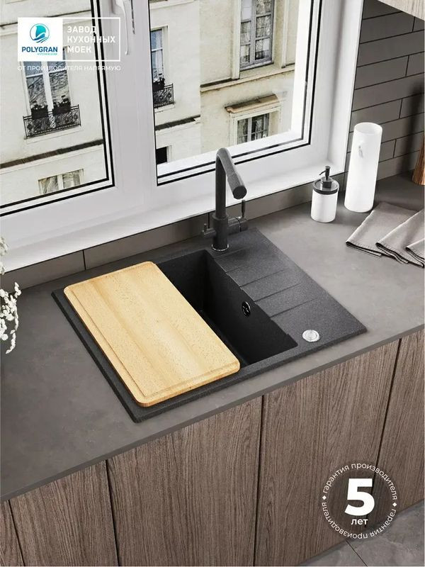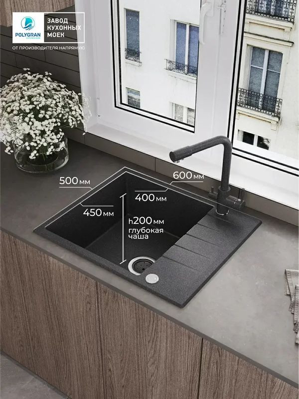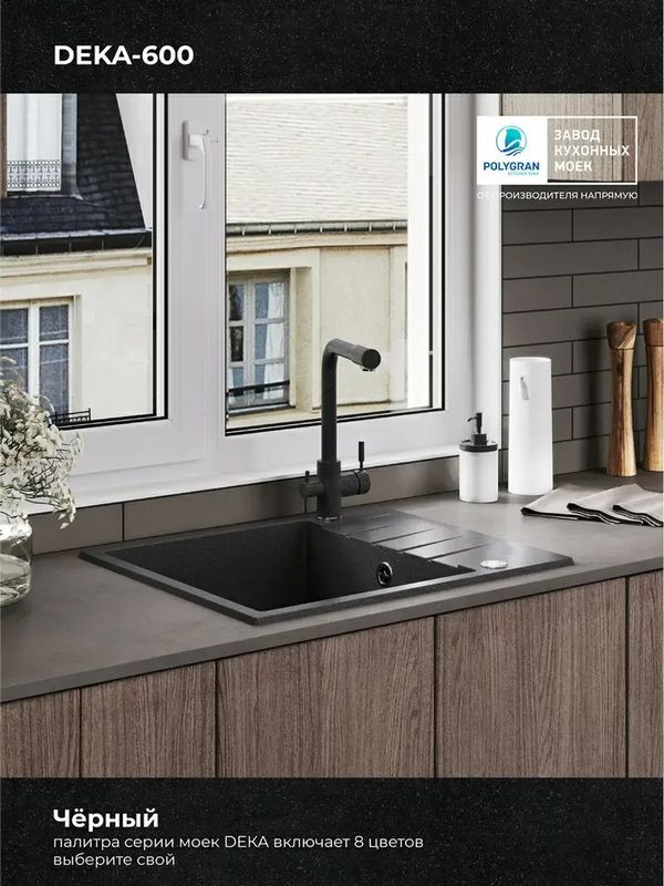 Быстрая покупка товара: Кухонная мойка Polygran DEKA 600 черный код: 150788