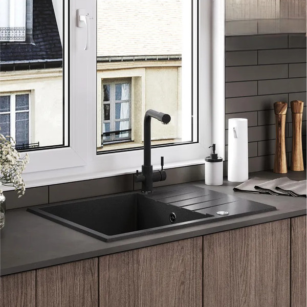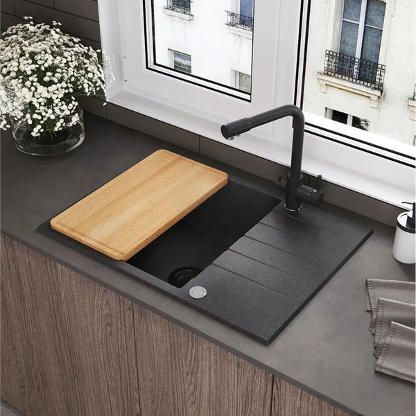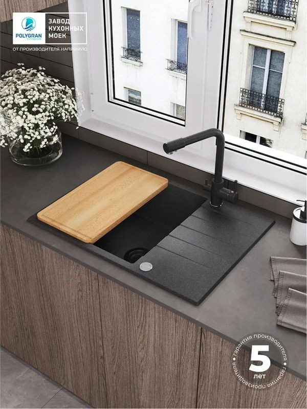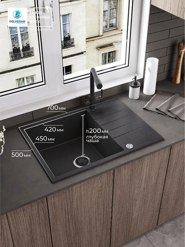Быстрая покупка товара: Кухонная мойка Polygran DEKA 700 черный код: 150796