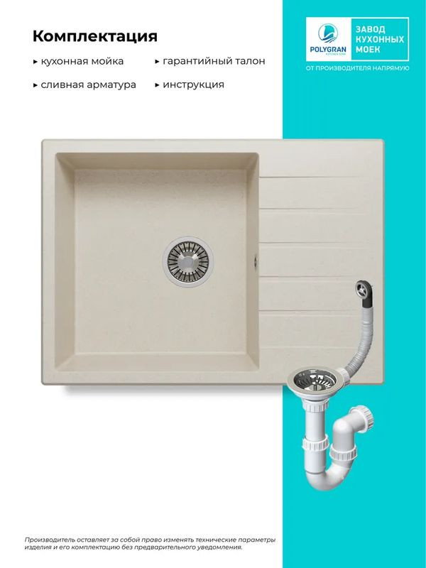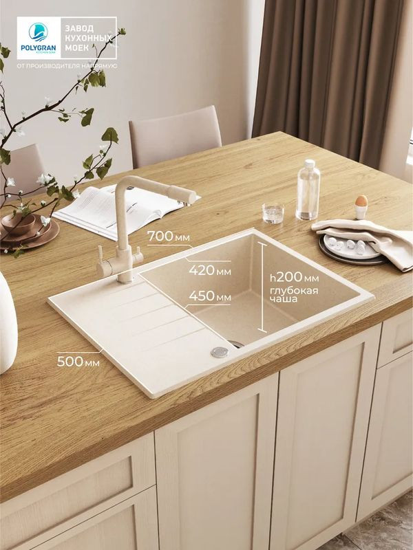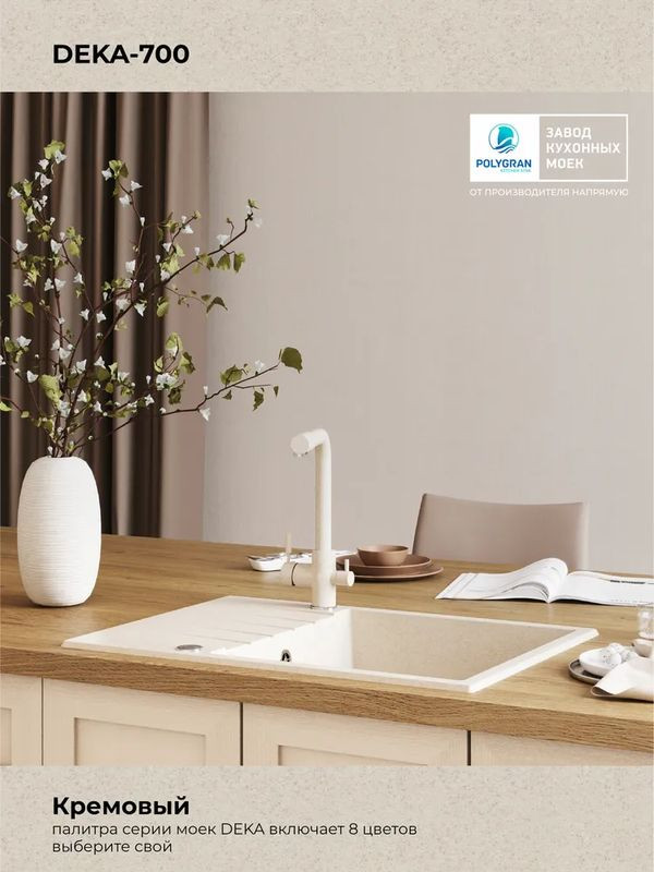 Быстрая покупка товара: Кухонная мойка Polygran DEKA 700 кремовый код: 150800