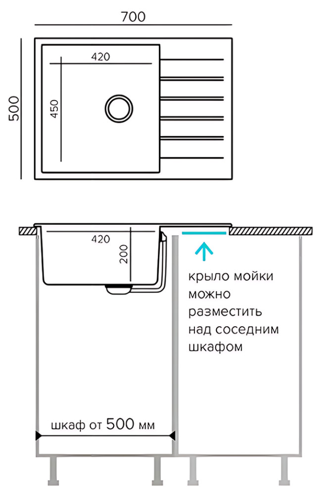 Быстрая покупка товара: Кухонная мойка Polygran DEKA 700 опал код: 150801