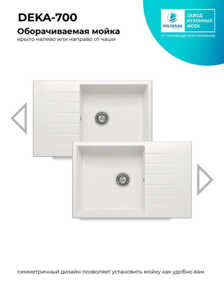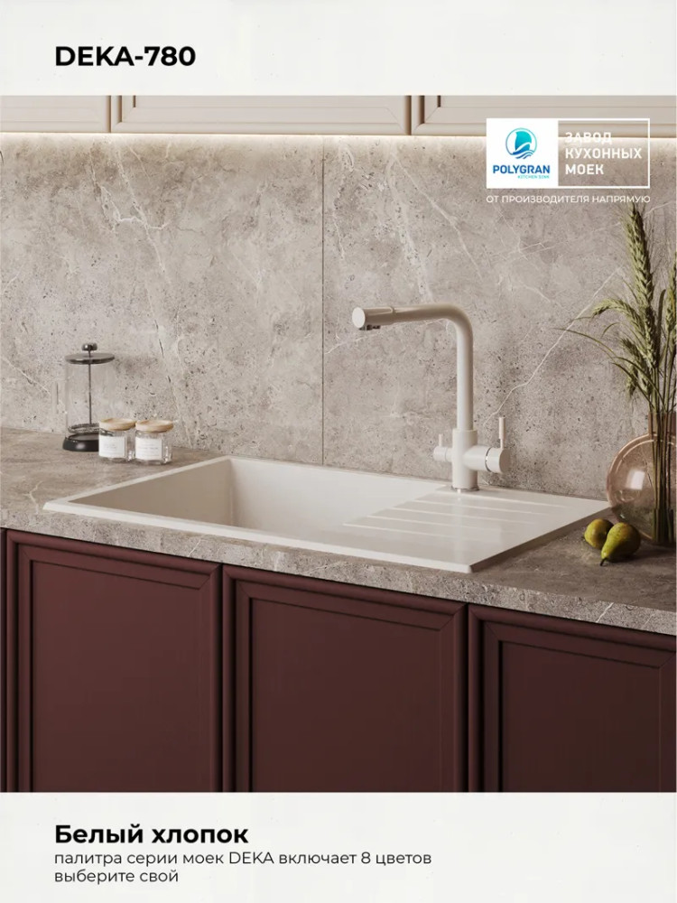 Быстрая покупка товара: Кухонная мойка Polygran DEKA 780 белый хлопок код: 150810