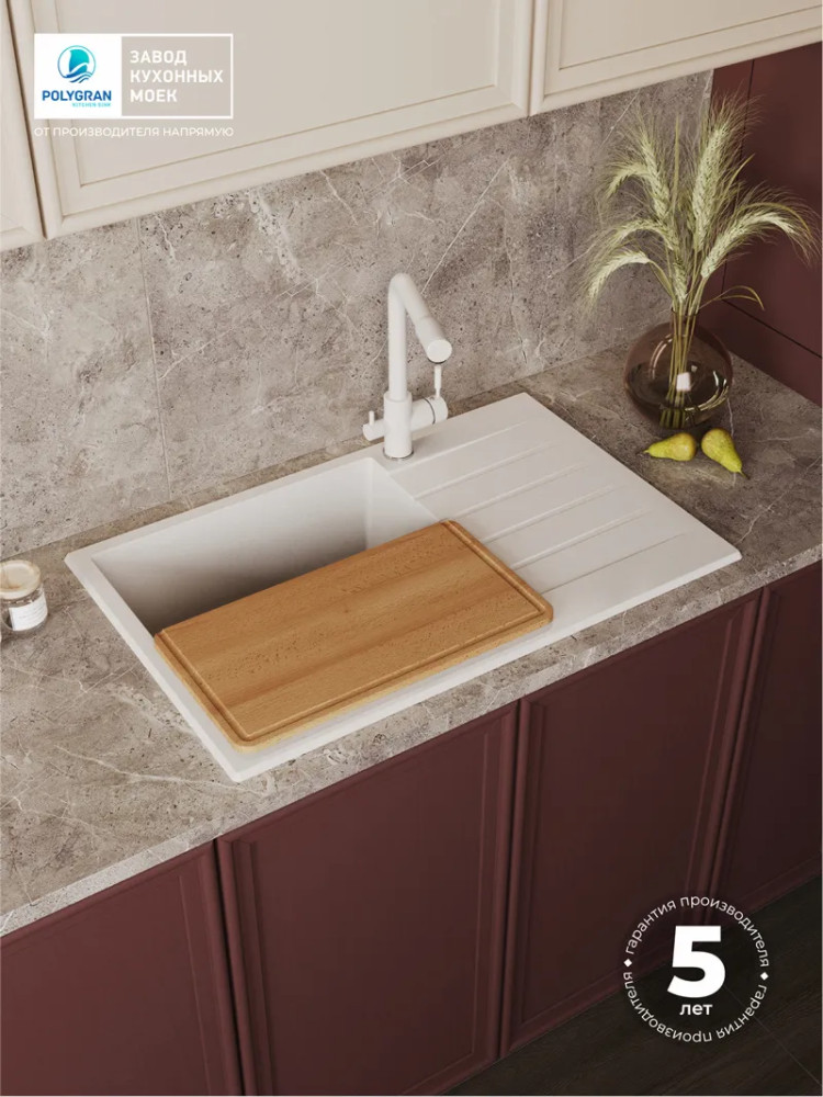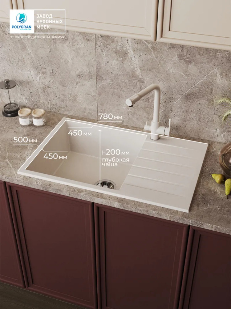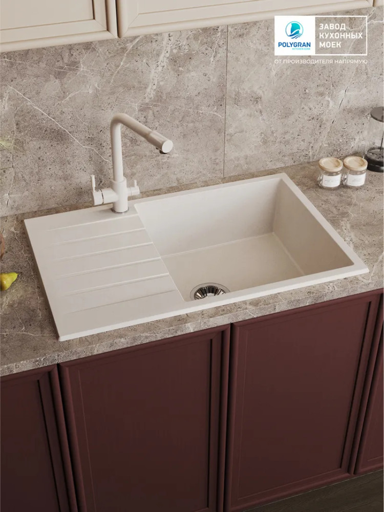 Кухонная мойка Polygran DEKA 780 белый хлопок