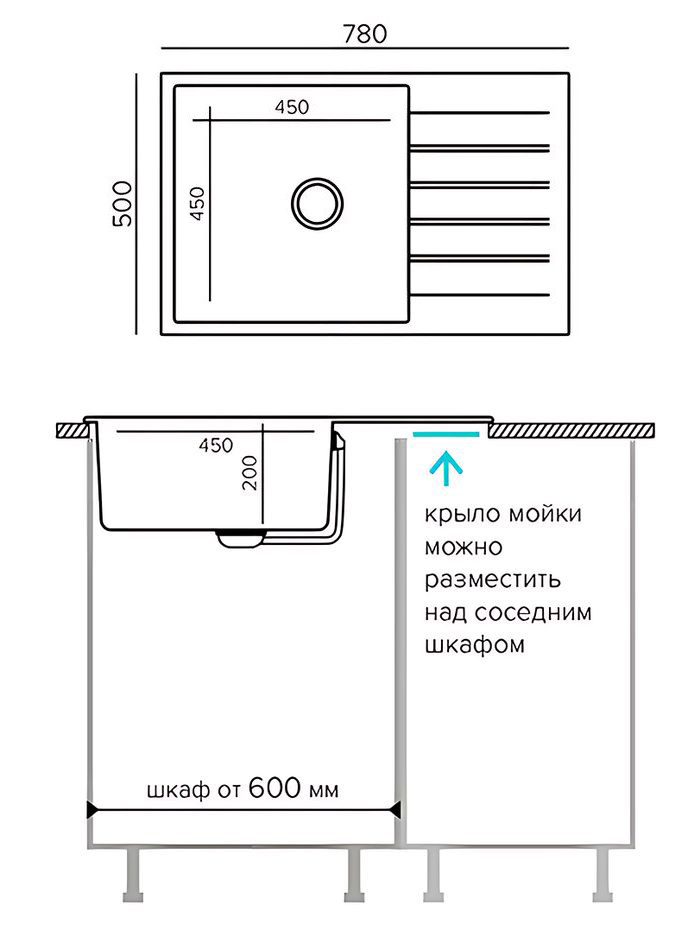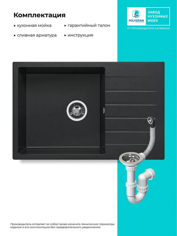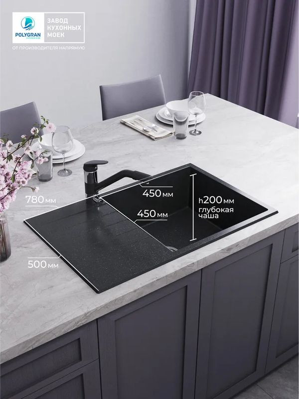 Быстрая покупка товара: Кухонная мойка Polygran DEKA 780 космос код: 150807