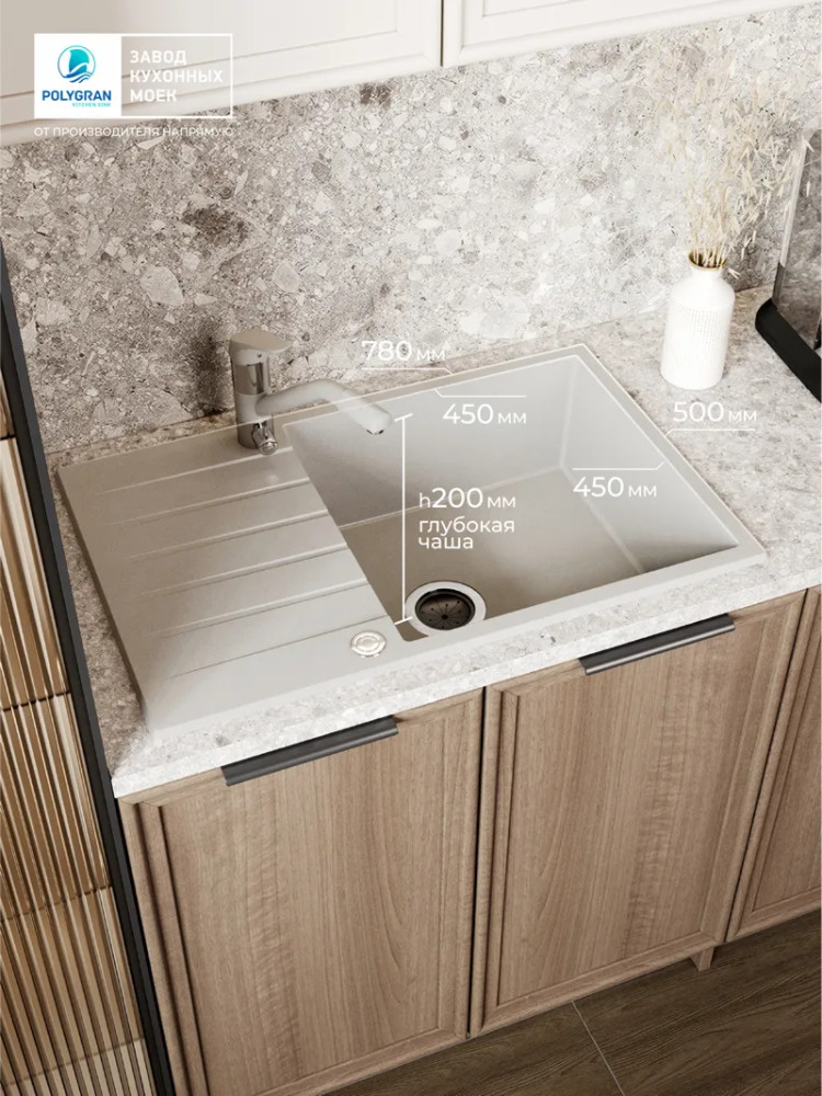 Быстрая покупка товара: Кухонная мойка Polygran DEKA 780 серый код: 150803