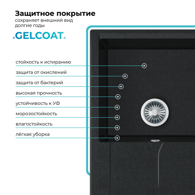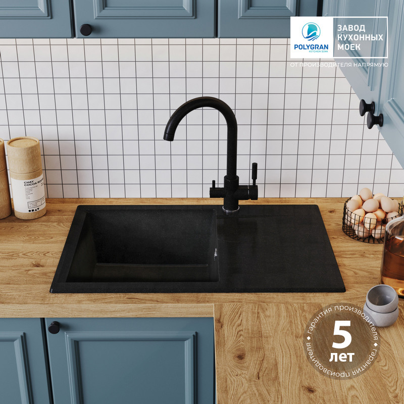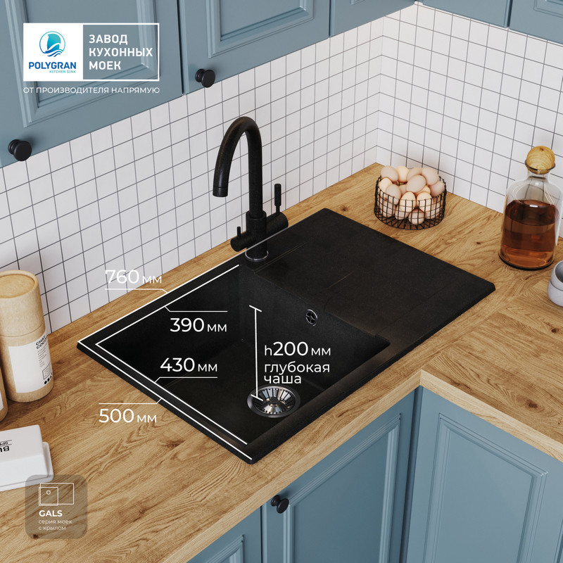 • Кухонная мойка Polygran GALS 760 космос черный металлик