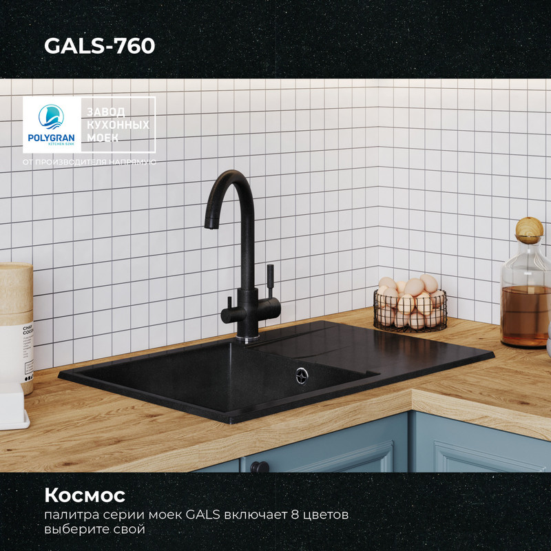 Быстрая покупка товара: Кухонная мойка Polygran GALS 760 космос черный металлик код: 150684