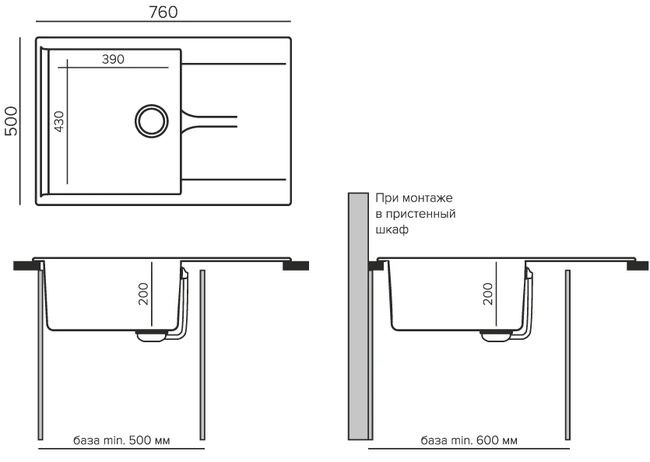 | Способ установки | врезная на столешницу |