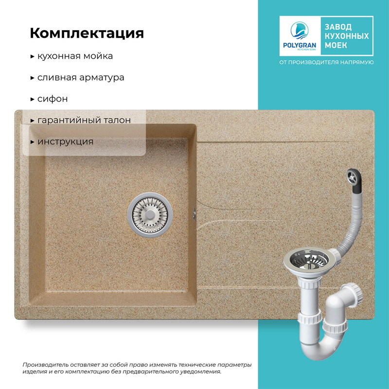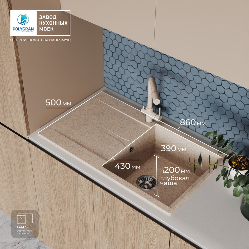 Быстрая покупка товара: Кухонная мойка Polygran GALS 860 песочный код: 150690