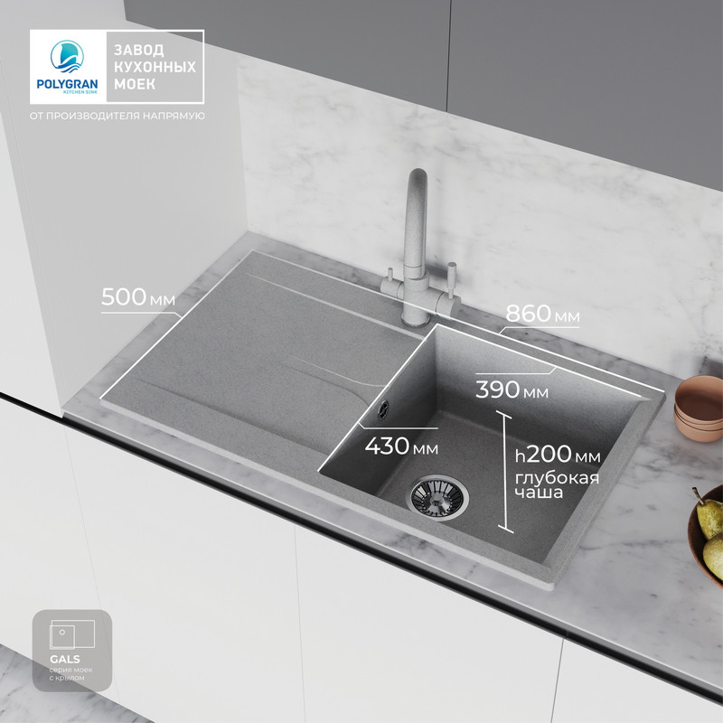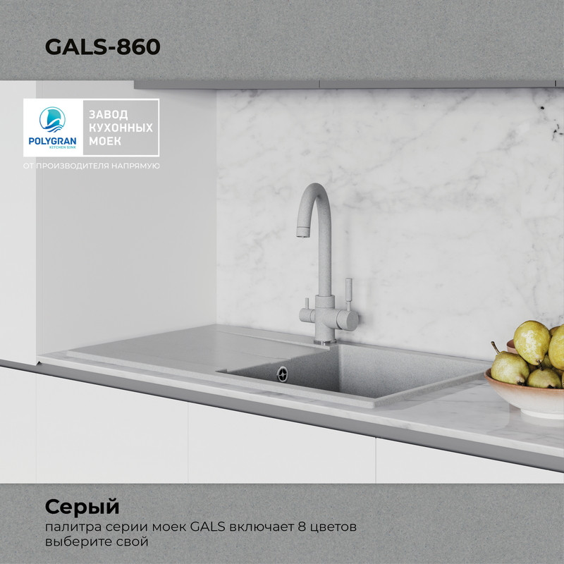 Быстрая покупка товара: Кухонная мойка Polygran GALS 860 серый код: 150688