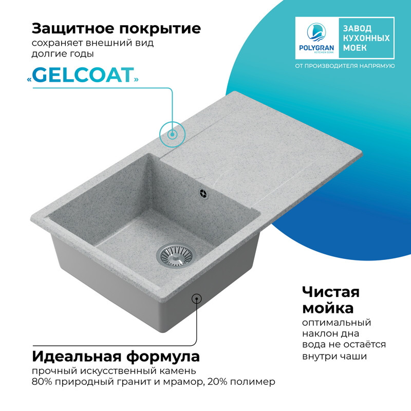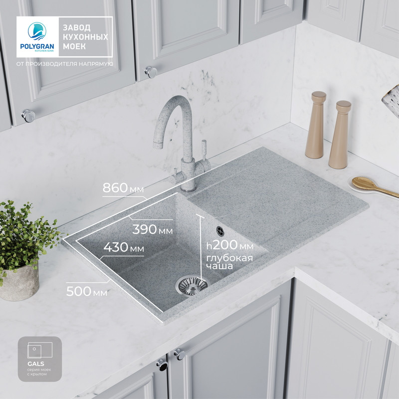 Быстрая покупка товара: Кухонная мойка Polygran GALS 860 светло-серый код: 150691