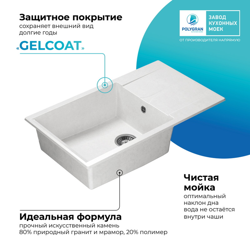 Быстрая покупка товара: Кухонная мойка Polygran GALS 862 белый хлопок код: 150703