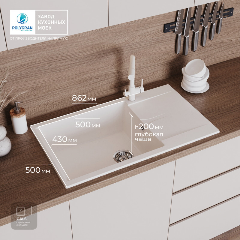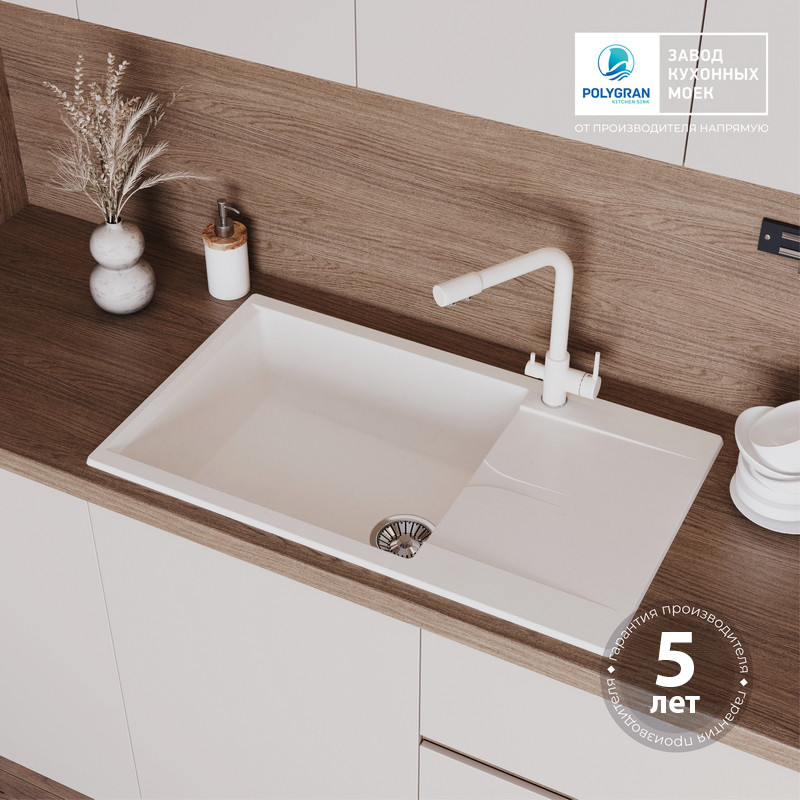 Кухонная мойка Polygran GALS 862 белый хлопок
