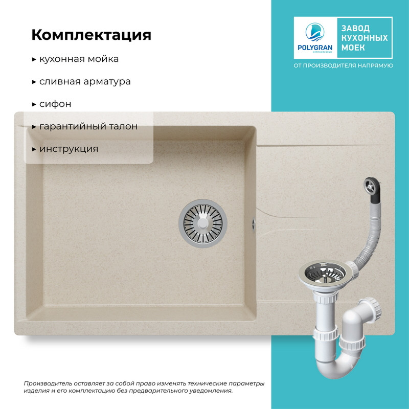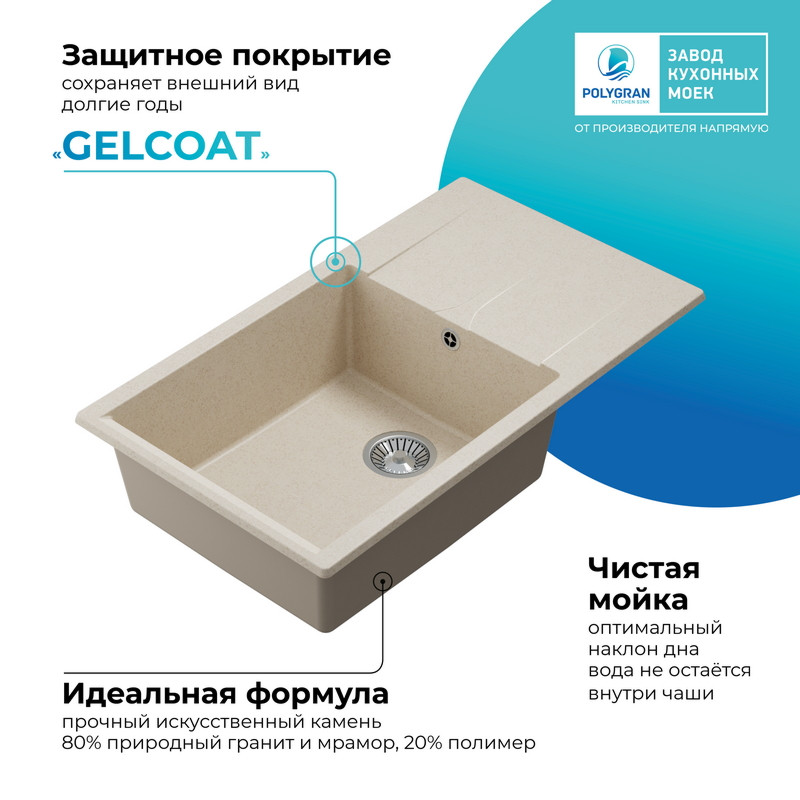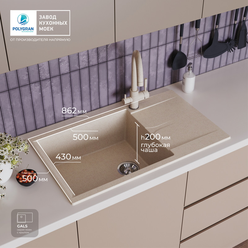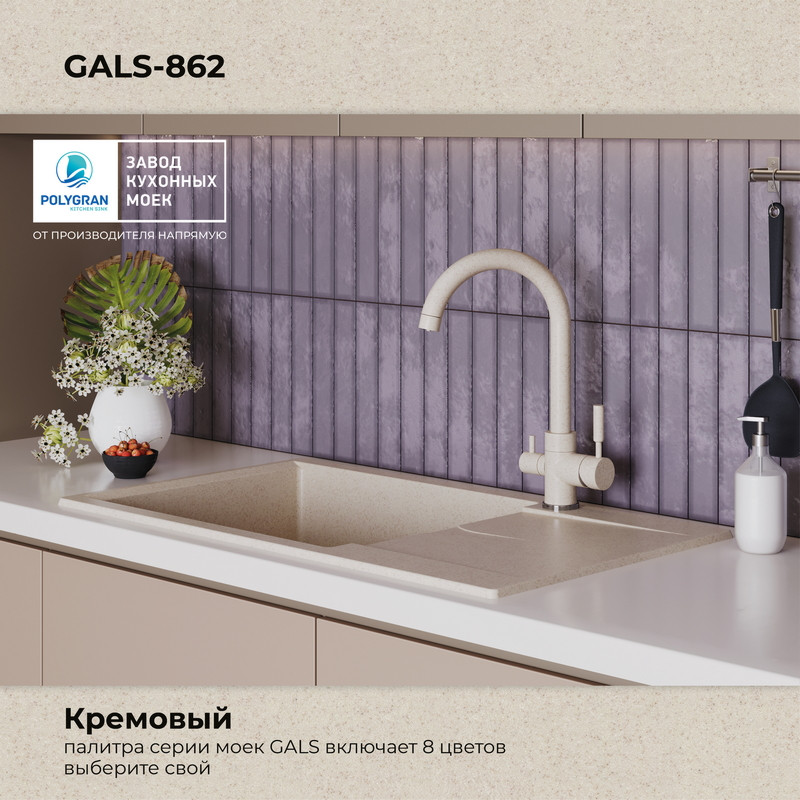 Быстрая покупка товара: Кухонная мойка Polygran GALS 862 кремовый код: 150701
