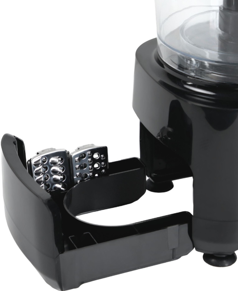 Комбайн оснащён резиновыми ножками-присосками, обеспечивающими надёжную устойчивость на любой поверхности даже при высокой скорости работы. Отсек для хранения режущих элементов обеспечит компактное и безопасное хранение лезвий. Комбайн оснащен функцией защиты от брызг. Легкая смена насадок обеспечит удобное, комфортное и безопасное использование комбайна.