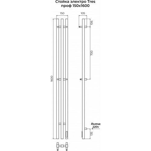 Полотенцесушитель Terminus Стойка электро Tres профиль 1600