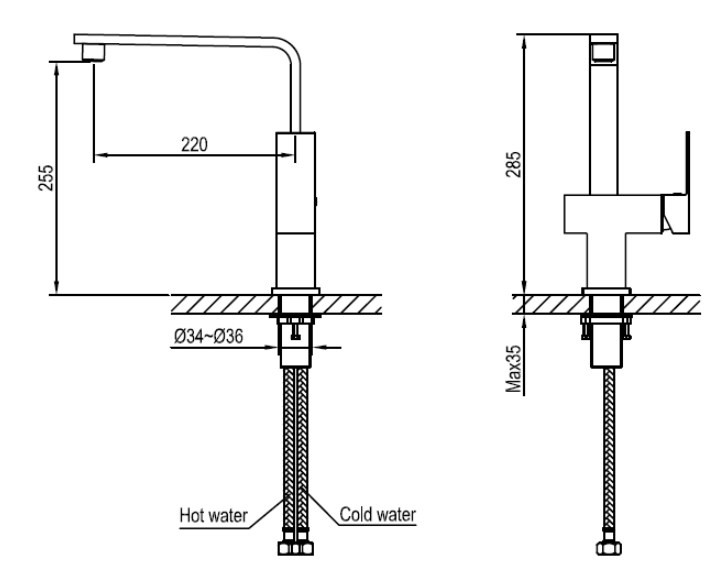 | Высота излива, мм | 255 |