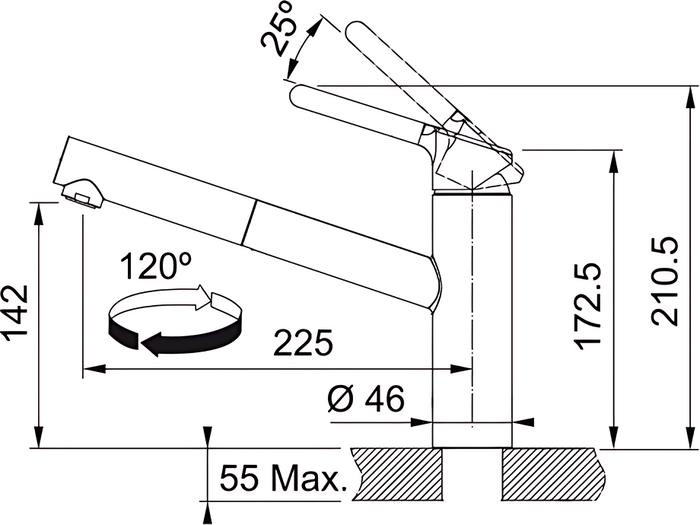 | Длина (вылет) излива, мм | 225 |