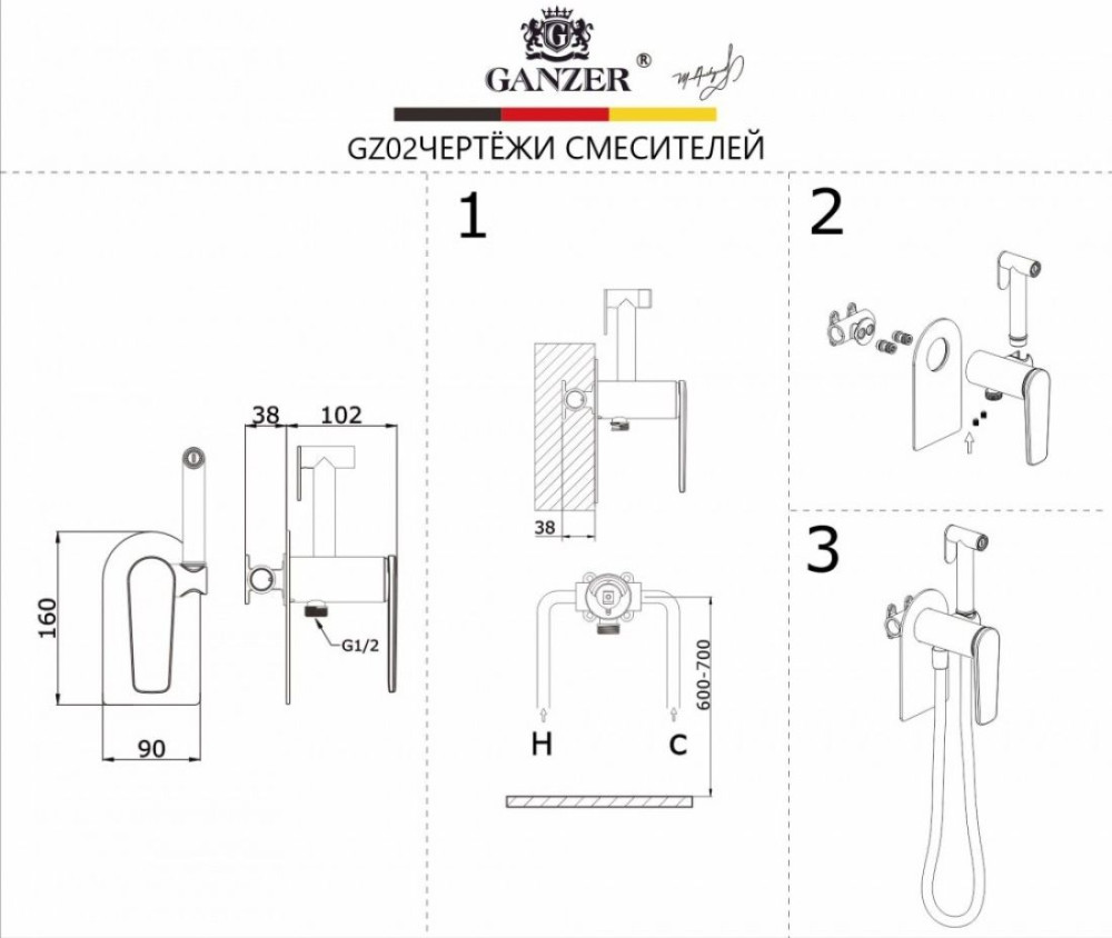 • Смеситель Ganzer GZ02157-Q оружейная сталь