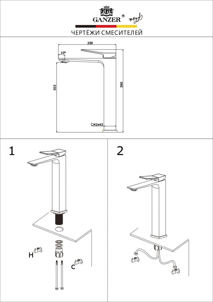 | Длина (вылет) излива, мм | 250 |