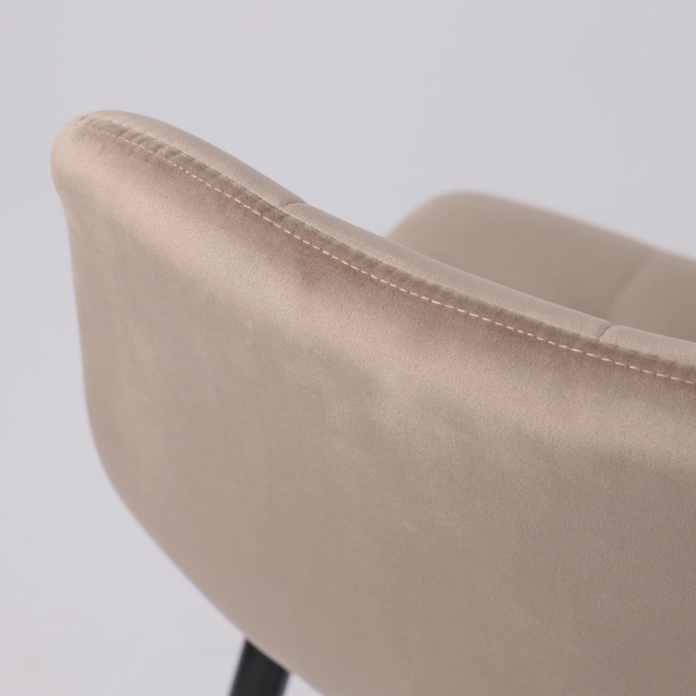 Обивка из велюра отличается приятной текстурой и высокой износостойкостью, что подчеркивает стильный и утонченный дизайн изделия. Каркас выполнен из металла и является надежным и устойчивым вариантом для кухонного стула, так как такая мебель не ломается, ножки не расшатываются и не отваливаются.