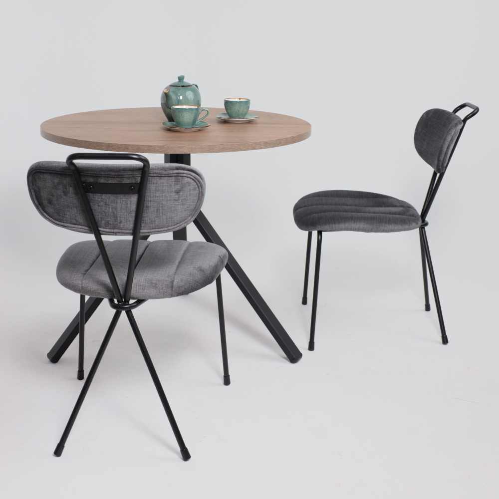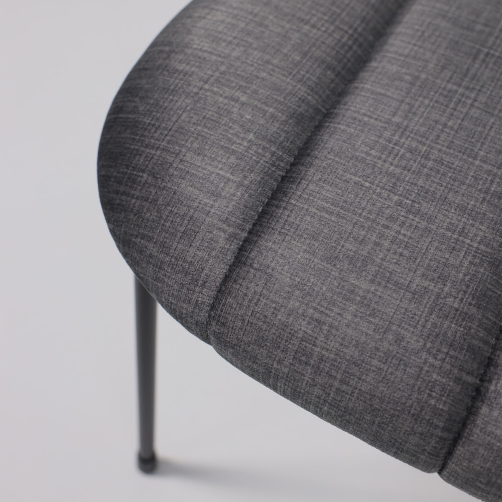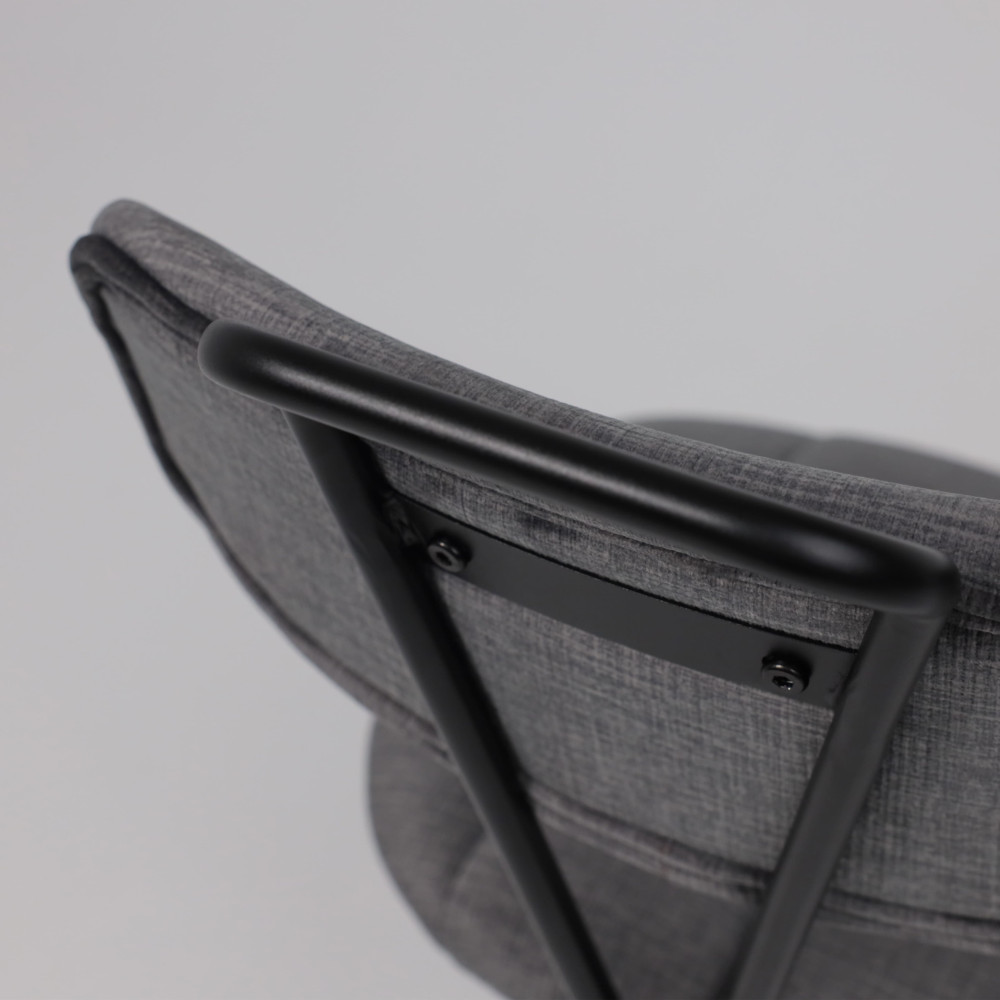 Спинка и сиденье выполнены из износостойкой и прочной ткани. Ткань устойчива к разрывам и истиранием, а также неприхотлива в уходе. Каркас выполнен из металла и является самым надежным и устойчивым вариантом для кухонного стула, так как такая мебель не ломается, ножки не расшатываются и не отваливаются.