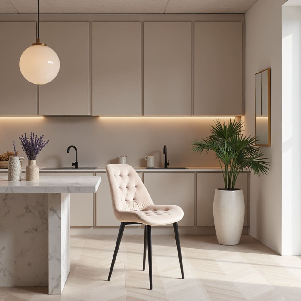 Стул Алвест AV 435 бежевый/черный станет стильным и практичным дополнением вашей кухни. Спинка и сиденье выполнены из плотного и износостойкого бархата, обладающего мягкой и приятной текстурой, а также высокой долговечностью. Эта ткань легко очищается от загрязнений, не требует сложного ухода и не вызывает аллергических реакций.