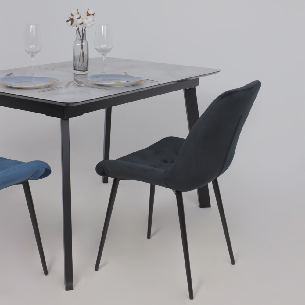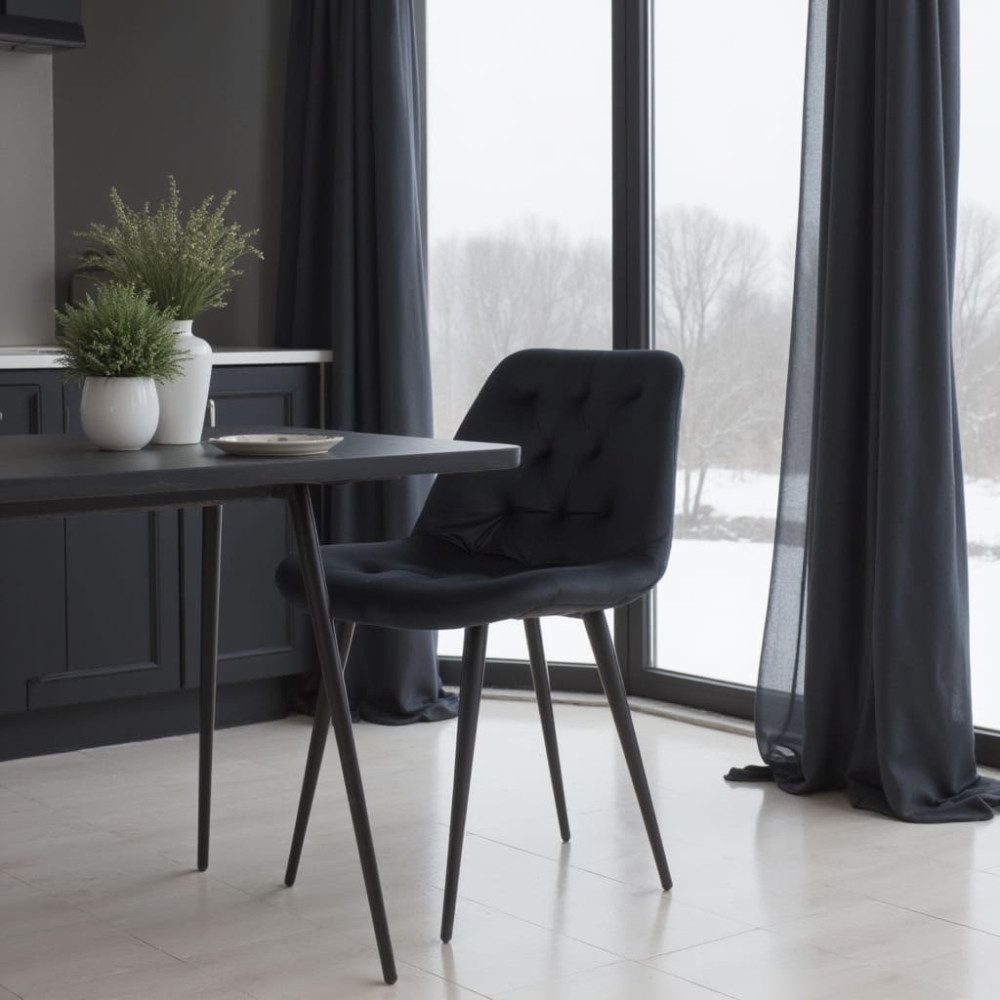 Стул Алвест AV 435 черный станет стильным и практичным дополнением вашей кухни. Спинка и сиденье выполнены из плотного и износостойкого бархата, обладающего мягкой и приятной текстурой, а также высокой долговечностью. Эта ткань легко очищается от загрязнений, не требует сложного ухода и не вызывает аллергических реакций.