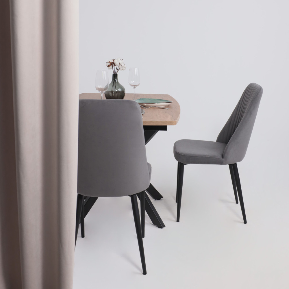 Стул Listvig Лотус R антрацитовый/черный — идеальный выбор для современного обеденного стола, сочетающий стиль и комфорт. Мягкая обивка из велюра обладает бархатистой текстурой, приятной на ощупь и высокой устойчивостью к износу, подчеркивая утонченный дизайн.
