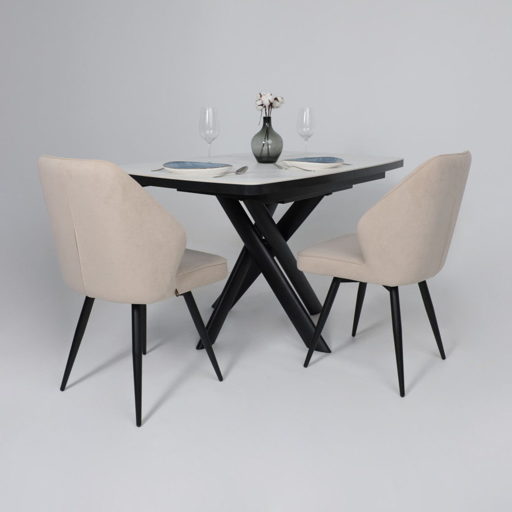 Стул MamaDoma Michael-R1 360 кремовый/черный — идеальный выбор для современного обеденного стола, сочетающий стиль и комфорт. Мягкая обивка из велюра обладает бархатистой текстурой, приятной на ощупь и высокой устойчивостью к износу, подчеркивая утонченный дизайн.