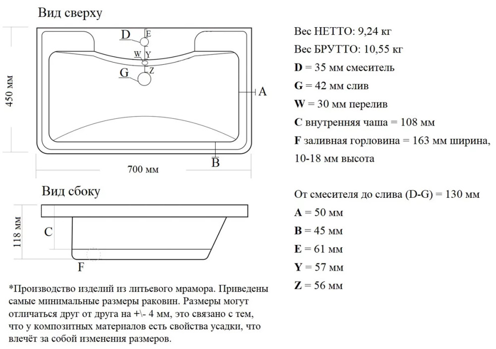 | Материал | литой мрамор |